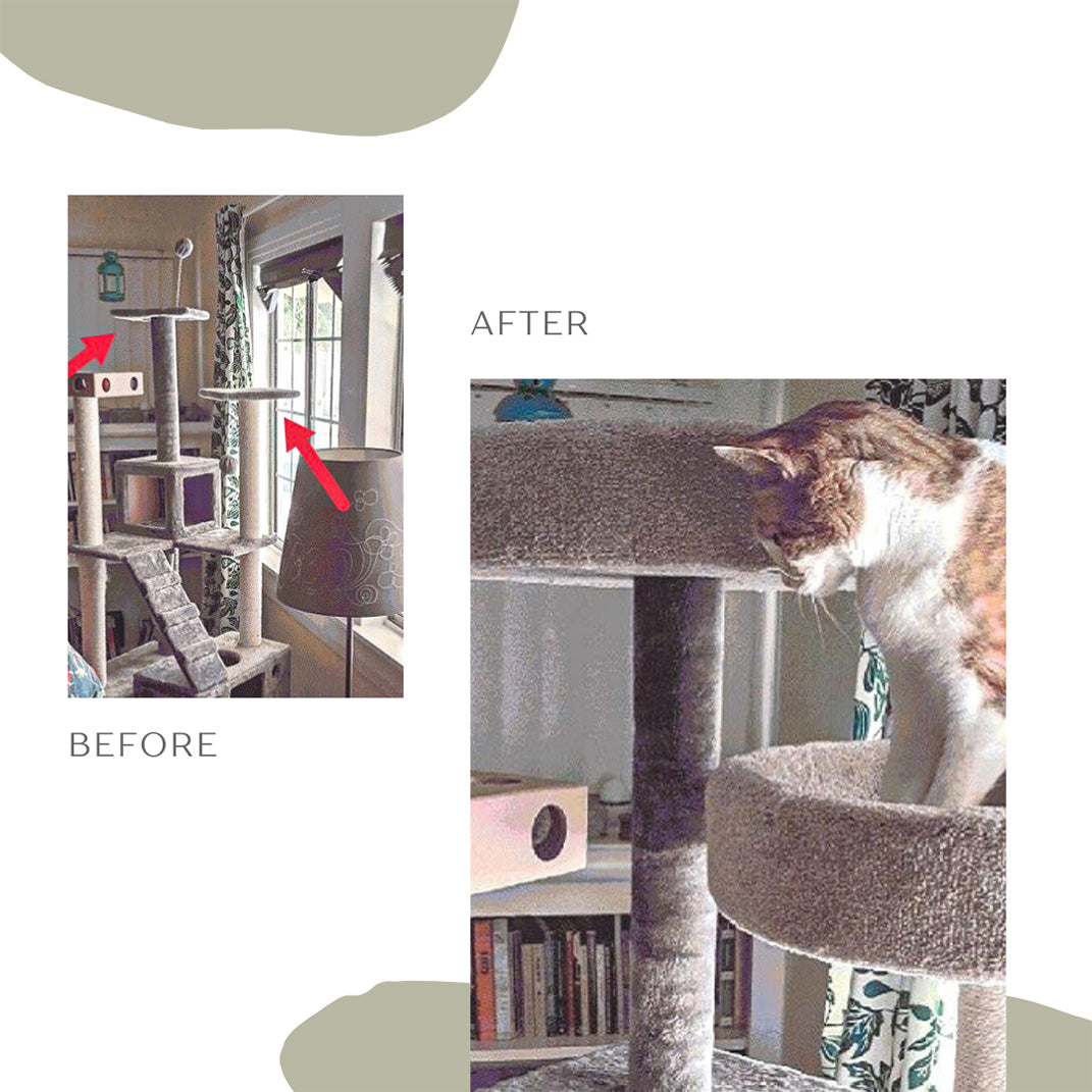 These original skimpy platforms were unsafe and poorly built. The tree lacked space for their kitty to curl up and sleep in comfort