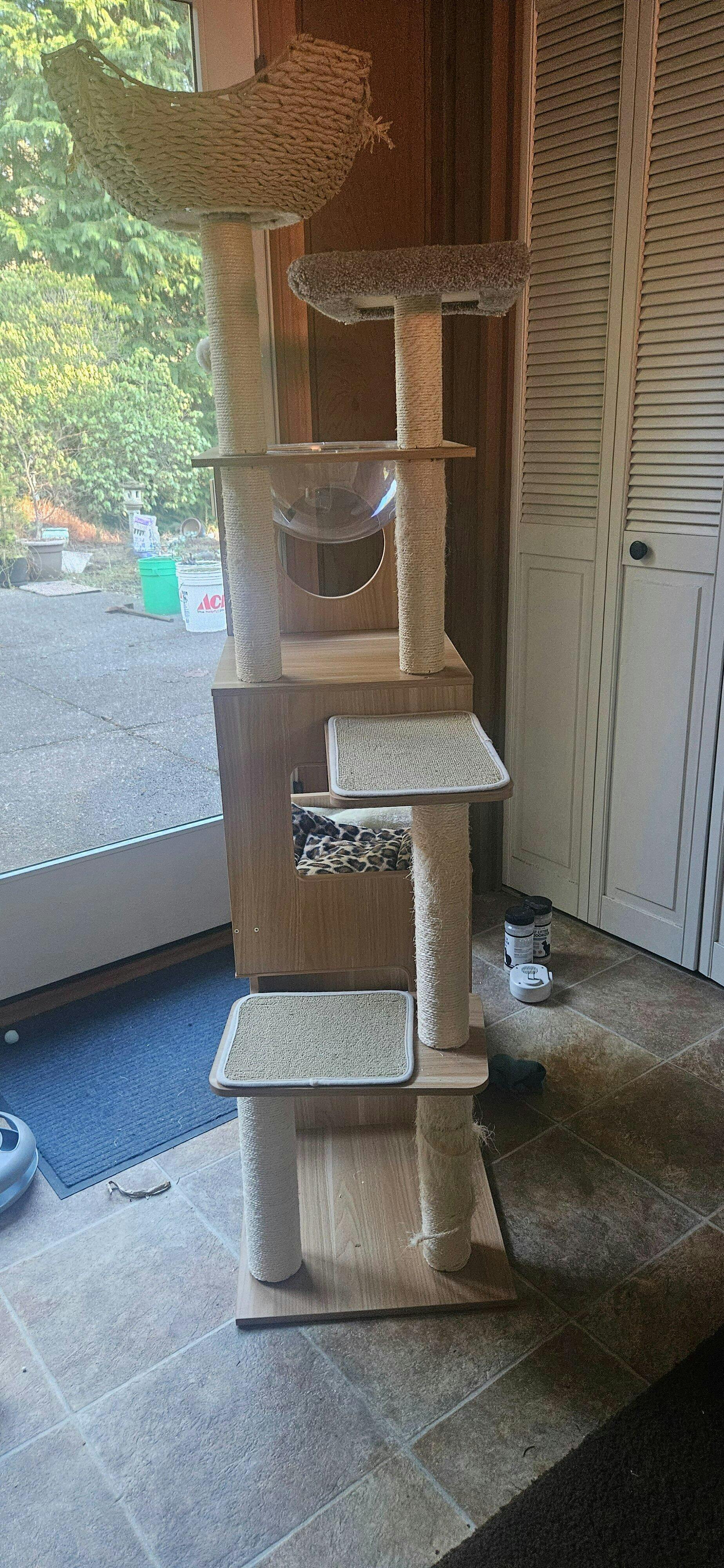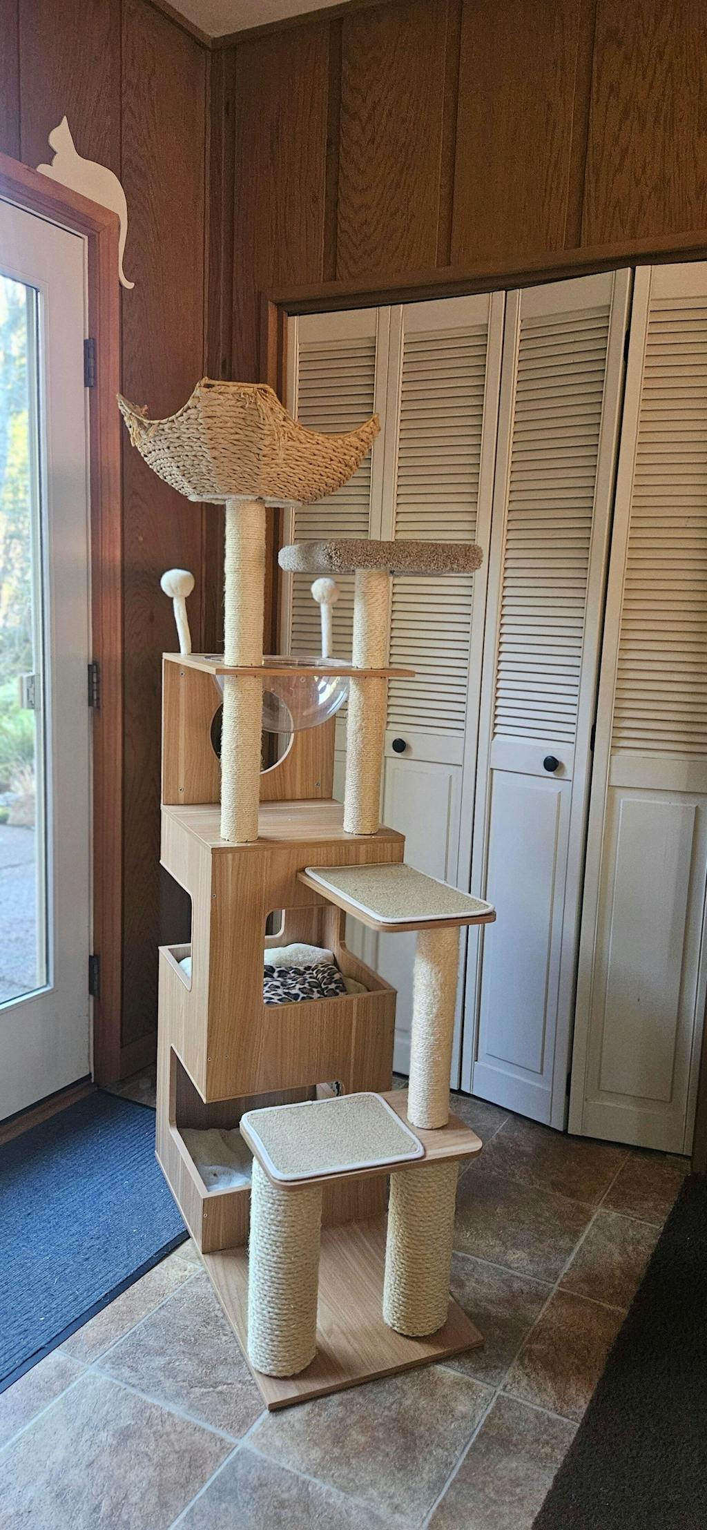 Donna is a creative individual who has returned for more of our superior parts. This time, she wanted to get some more substantial posts to support her original nests on her cats' (Oso & Rocky) favorite tree. Donna was very focused on getting precicely the correct mix of posts and hardware, and as a result, she has immediate success installing the latest improvement to her cat tree. We appreciate that Donna bought from us because she also runs a small business. Thanks Donna for your support, and don't be a stranger. Matter of fact, I think I will be getting some of your cookies soon.-tommy (owner)