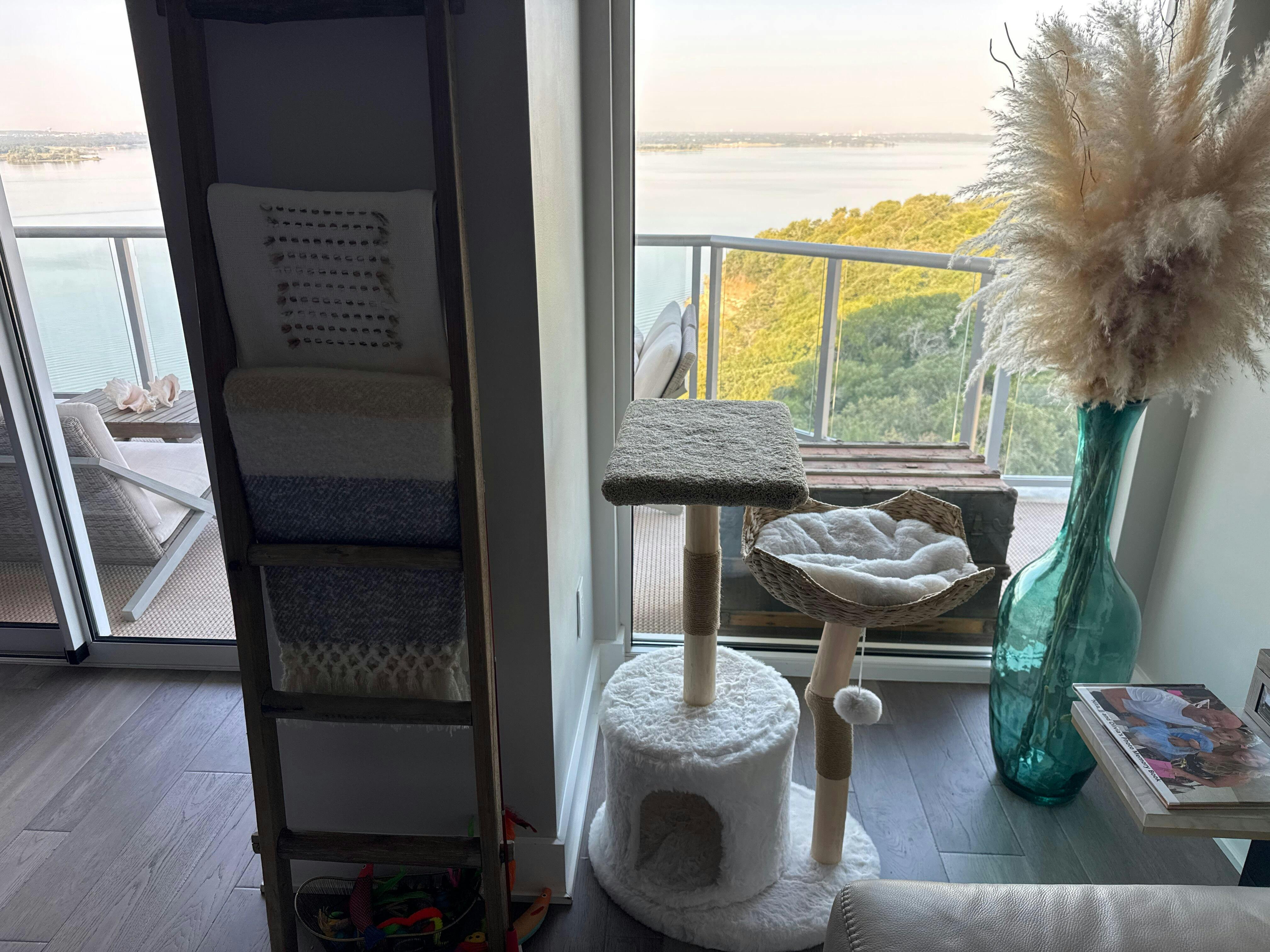 A simple curved perch -approx. 17x 8x2 in., painstakingly & lovingly crafted in the USA with skills developed over 35 years. A classic, time-tested design perfect for lounging. Built to last and support any average-sized cat. Upholstered with premium carpet. Column & hardware not included.